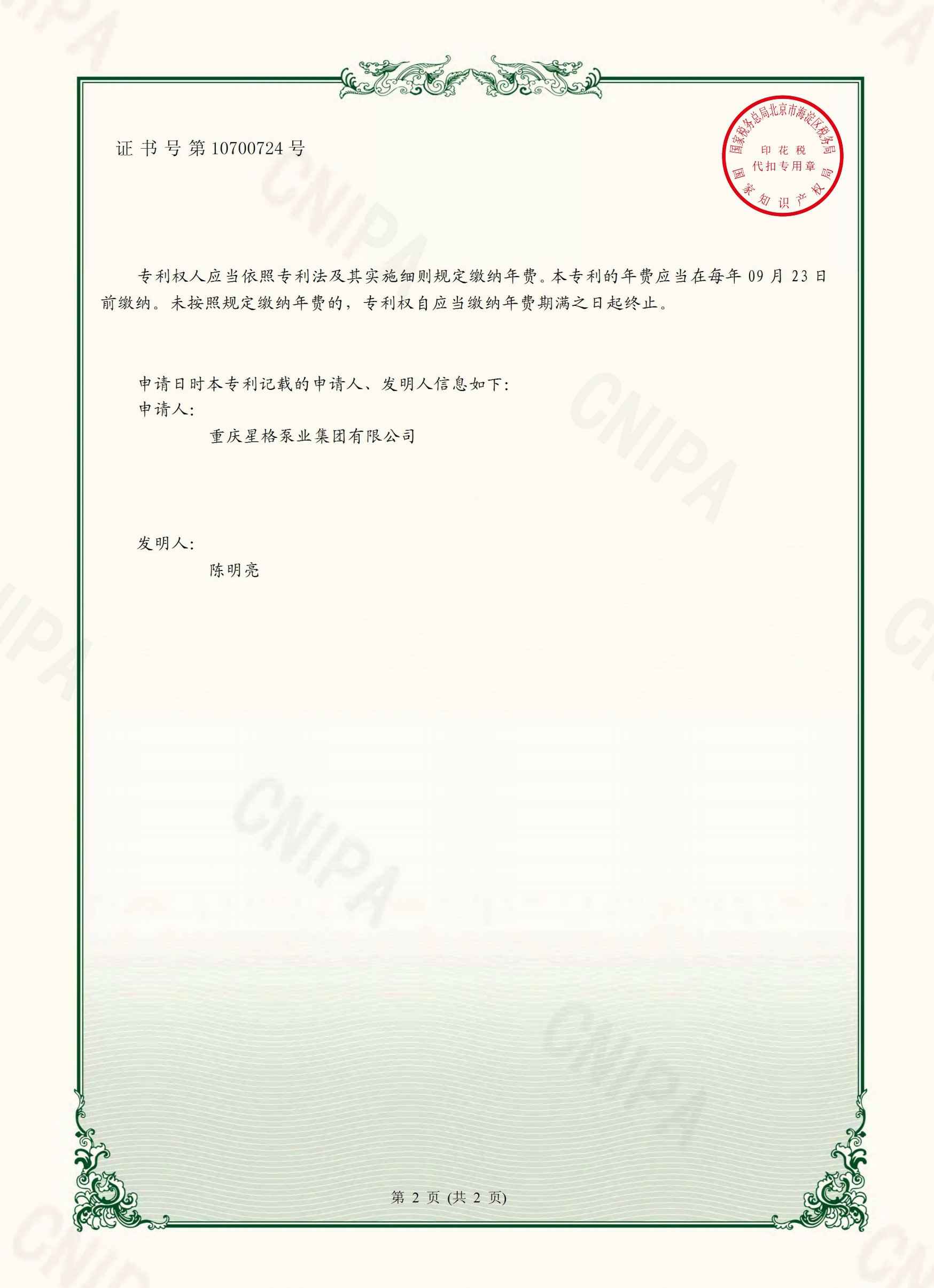 热烈祝贺我公司《一种直通式离心泵》发明专利获得国家知识产权局授权,并于2020年6月获得国家发明专利证书。